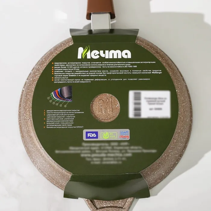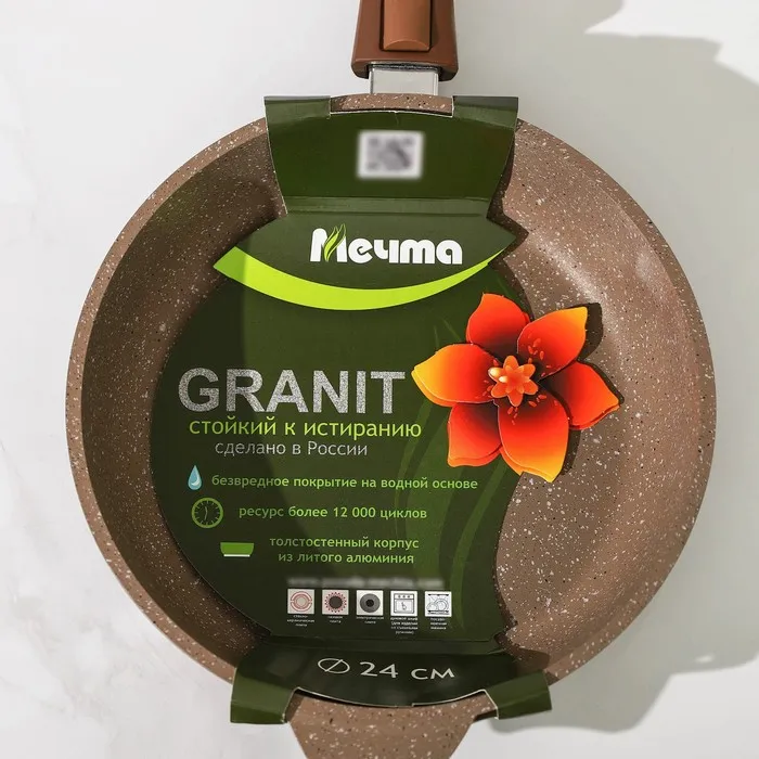 Сковорода Мечта «Гранит Brown», d=24 см, антипригарное покрытие, съёмная ручка, литой алюминий, МИКС — Характеристики