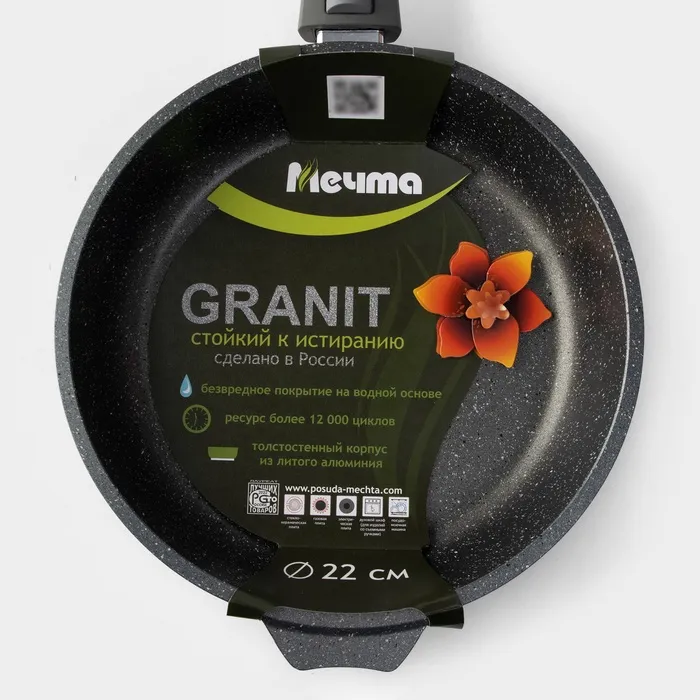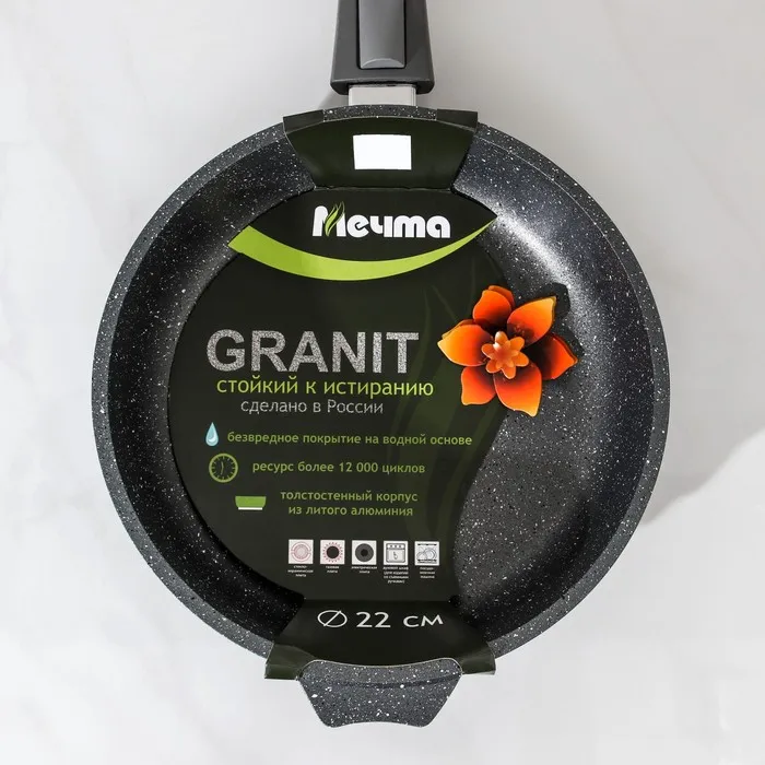 Сковорода Мечта «Гранит», d=22 см, съёмная ручка, антипригарное покрытие, литой алюминий, серая — Характеристики