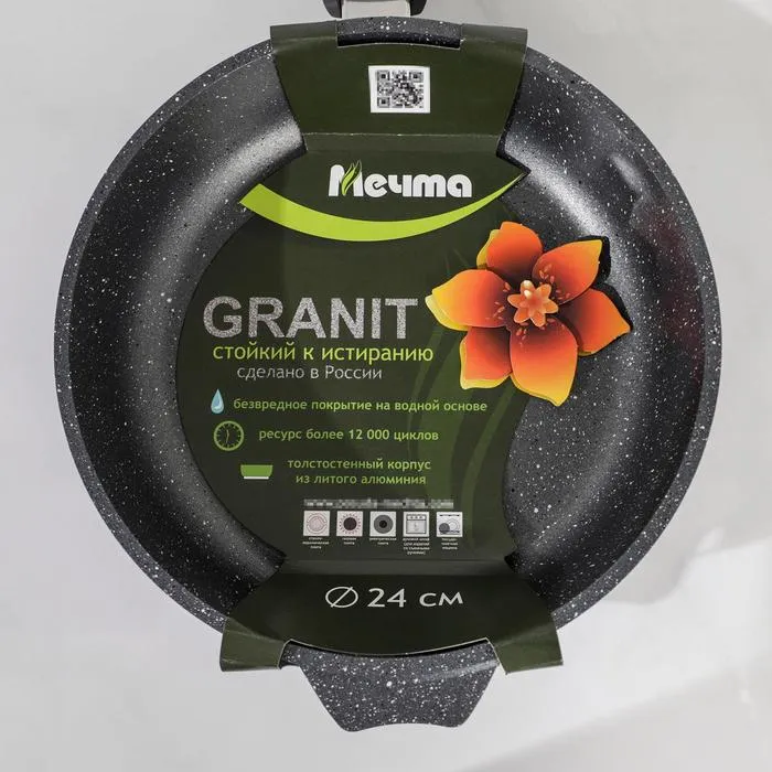 Сковорода Мечта «Гранит», d=24 см, съёмная ручка, антипригарное покрытие, серая — Характеристики
