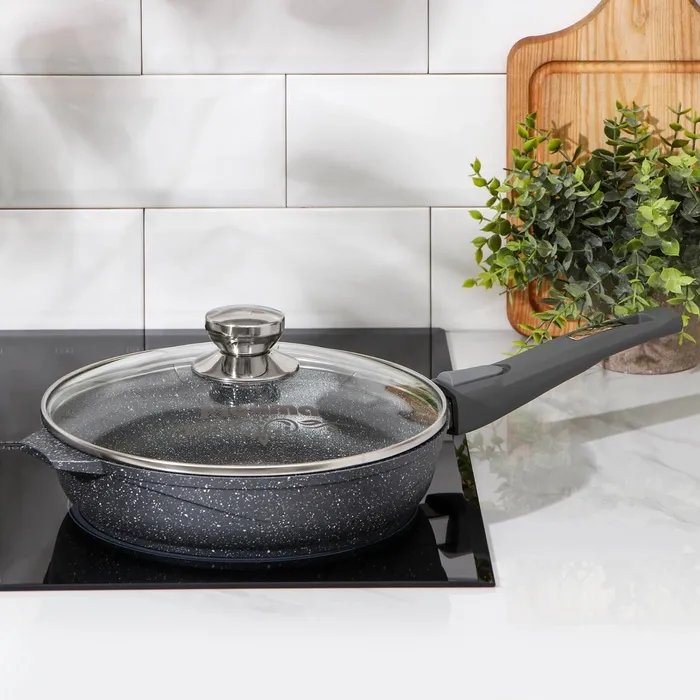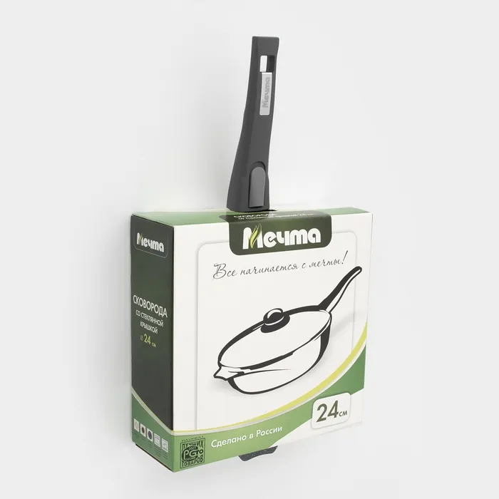 Сковорода Мечта «Гранит», d=24 см, съёмная ручка, антипригарное покрытие, стеклянная крышка, серая — Характеристики