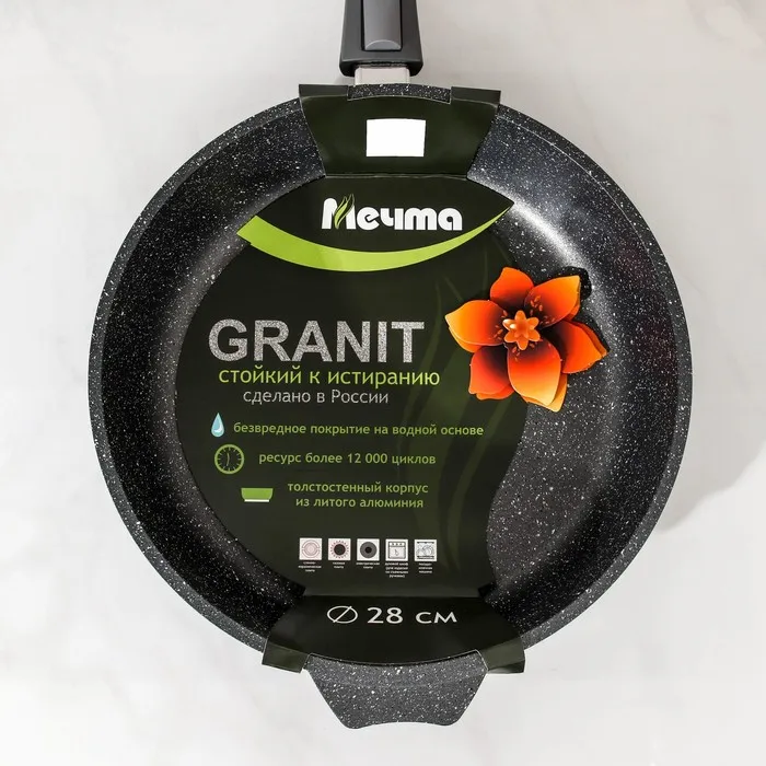 Сковорода Мечта «Гранит», d=28 см, съёмная ручка, антипригарное покрытие, серая — Характеристики
