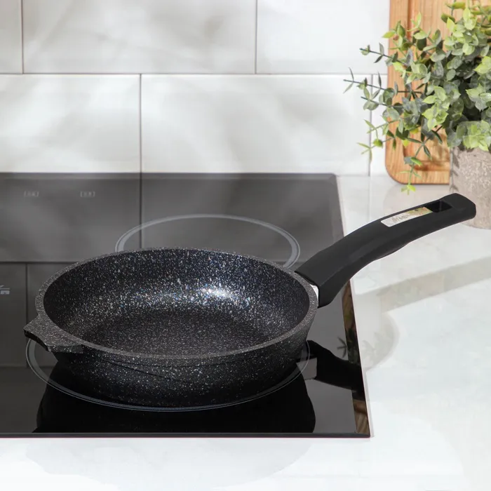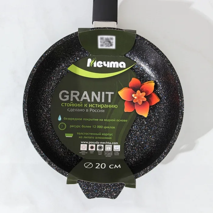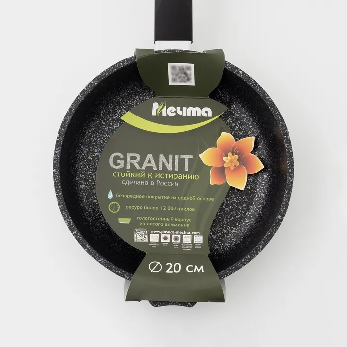 Сковорода из литого толстостенного алюминия «Мечта» станет незаменимым инструментом и надежным помощником на вашей кухне. Многофункциональная сковорода Гранит отлично подойдет для приготовления разнообразных блюд из мяса, рыбы и овощей. Благодаря термоаккумулирующим свойствам пищевого алюминия, пища на сковороде Гранит не пригорает, а томится, а благодаря новейшей формуле сверхпрочного антипригарного покрытия готовить можно при минимальном количестве масла не переживая за то что пища может пригореть. На посуде ТМ «Мечта» можно жарить, тушить и варить без потерь вкусовых и полезных качеств продуктов. Сковорода гранит из литого высококачественного пищевого алюминия «Мечта» станет незаменимым инструментом и надежным помощником на вашей кухне.