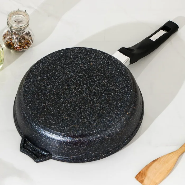 Сковорода из литого толстостенного алюминия «Мечта» станет незаменимым инструментом и надежным помощником на вашей кухне. Многофункциональная сковорода Гранит отлично подойдет для приготовления разнообразных блюд из мяса, рыбы и овощей. Благодаря термоаккумулирующим свойствам пищевого алюминия, пища на сковороде Гранит не пригорает, а томится, а благодаря новейшей формуле сверхпрочного антипригарного покрытия готовить можно при минимальном количестве масла не переживая за то что пища может пригореть. На посуде ТМ «Мечта» можно жарить, тушить и варить без потерь вкусовых и полезных качеств продуктов. Сковорода гранит из литого высококачественного пищевого алюминия «Мечта» станет незаменимым инструментом и надежным помощником на вашей кухне.
