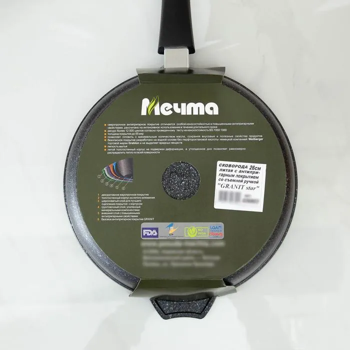 Сковорода Мечта «Гранит Star», d=26 см, съёмная ручка, антипригарное покрытие, тёмно-синяя — Характеристики