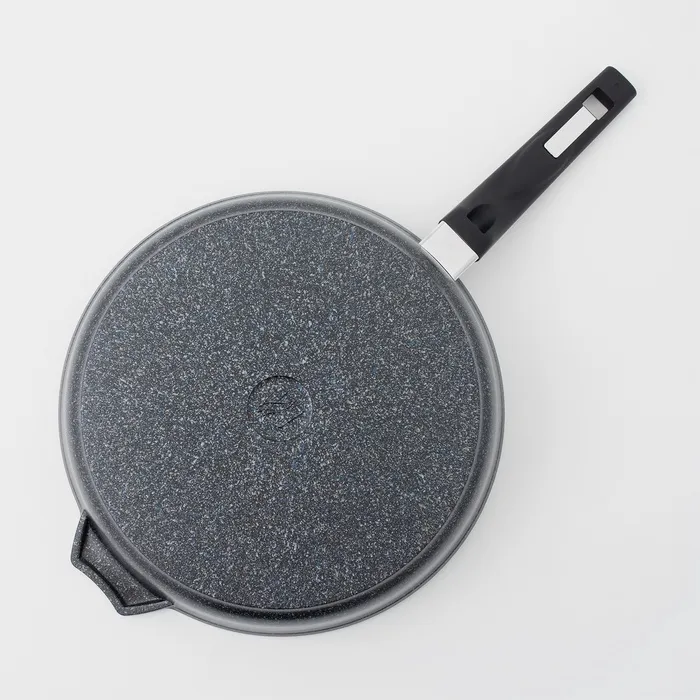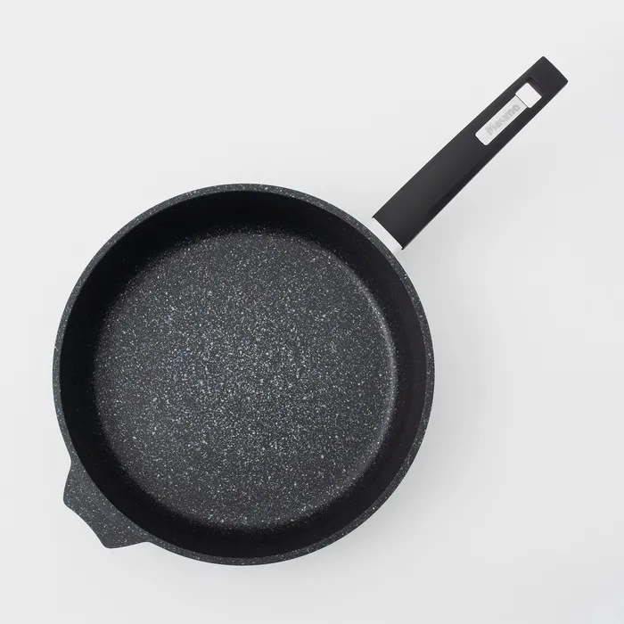 Серия Гранит — это литая алюминиевая посуда с антипригарным покрытием повышенной стойкости, с содержанием частиц твердых минералов.