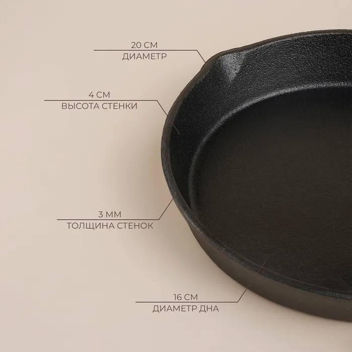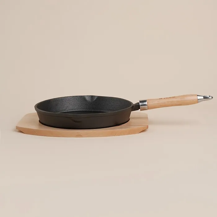 Сковорода на деревянной подставке SL Home, d=20, h=4 см, чугун, индукция, чёрная — Характеристики