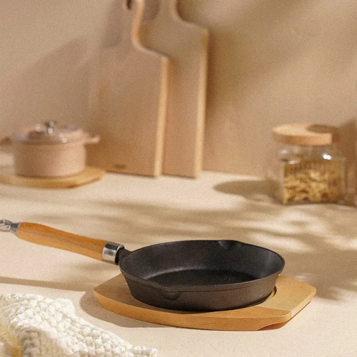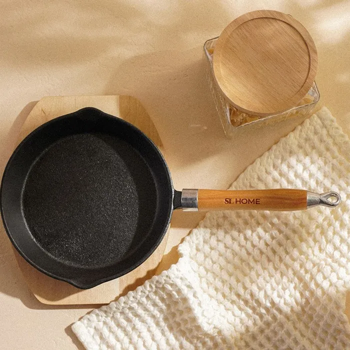 Сковорода чугунная на деревянной подставке SL Home — идеальный выбор для любителей готовить с комфортом и стилем. Эта универсальная сковорода диаметром 20 см и высотой 4 см подходит для всех типов плит, включая индукционные. Благодаря качественному чугуну и прочным стенкам и дну толщиной 4 мм, сковорода обеспечивает равномерное распределение тепла и отличные условия для тушения и запекания. Удобная деревянная подставка защищает поверхности от горячей посуды, а элегантный чёрный цвет добавляет кухне уюта.