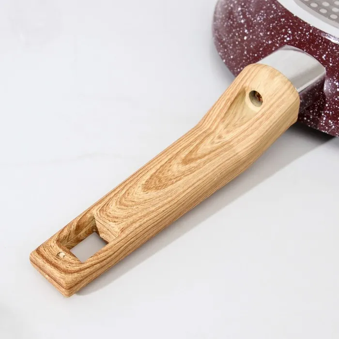 - Многослойное антипригарное покрытие с эффектом мрамора снижает расход масла и уменьшает калорийность блюд.
