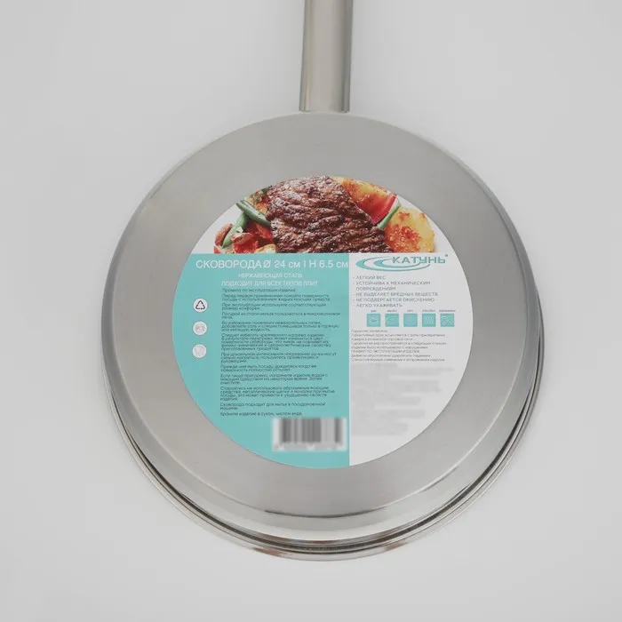 Сковорода «Общепит», d=24 см, h=6.5 см, корпус 0.6 мм, капсульное дно 3.5 мм, индукция, нержавеющая сталь — Характеристики