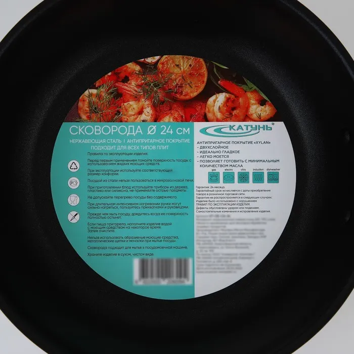 Сковорода «Общепит», d=24 см, толщина корпуса 0.6 мм, дно 3.5 мм, капсульное дно, антипригарное покрытие, индукция, нержавеющая сталь — Характеристики