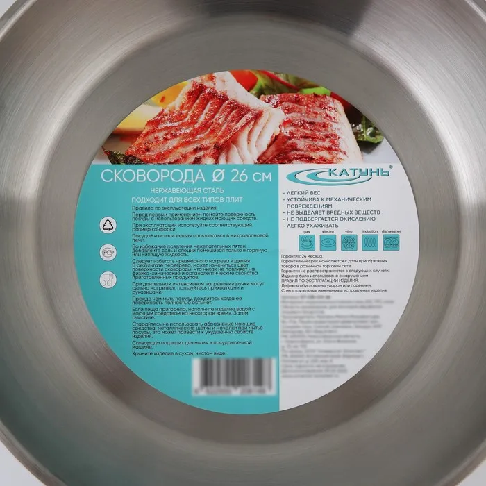 Сковорода «Общепит», d=26 см, толщина корпуса 0.6 мм, дно 3.5 мм, капсульное дно, индукция, нержавеющая сталь — Характеристики