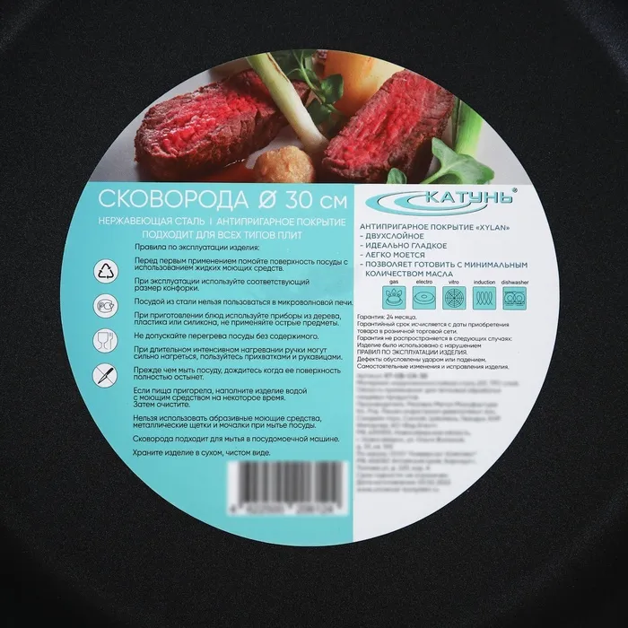 Сковорода «Общепит», d=30 см, толщина корпуса 0.6 мм, дно 3.5 мм, капсульное дно, антипригарное покрытие, индукция, нержавеющая сталь — Характеристики