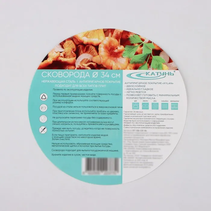 Сковорода «Общепит», d=34 см, толщина корпуса 0.6 мм, дно 3.5 мм, антипригарное покрытие, индукция, нержавеющая сталь — Характеристики