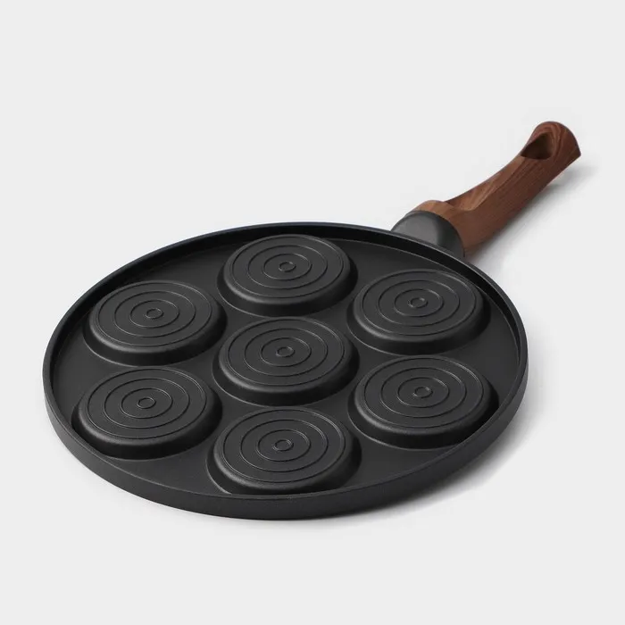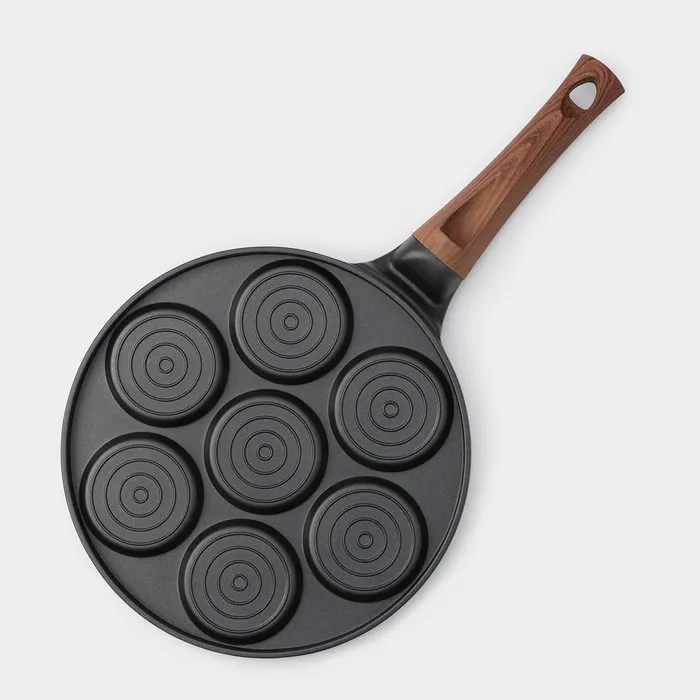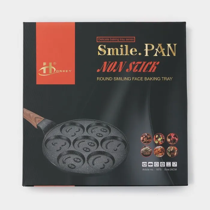 Сковорода-оладница Доляна «Смайлы», d=26 см, литой алюминий, ручка soft-touch, чёрная — Характеристики