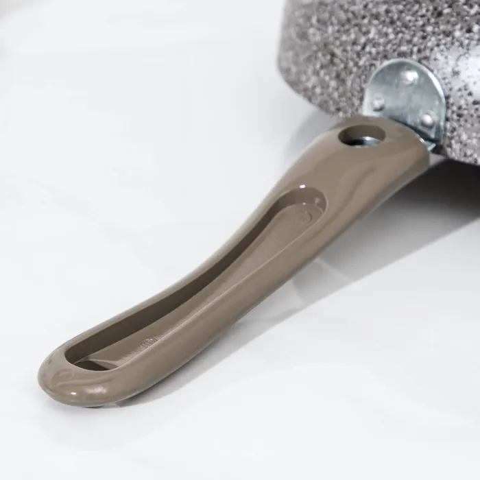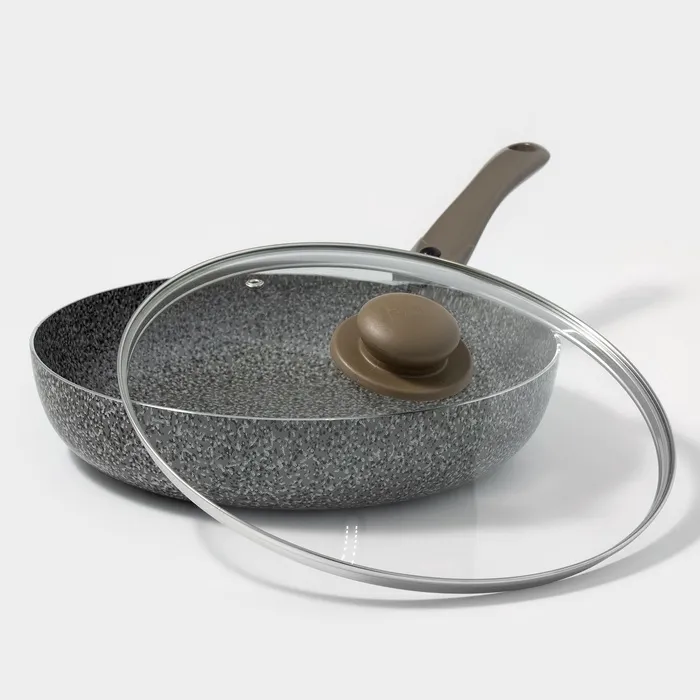 Сковорода Onyx, d=28 см, съёмная ручка, стеклянная крышка, антипригарное покрытие, цвет серый – это инновационная посуда с экологически чистым каменным покрытием на внешней и внутренней стороне изделия. Благодаря особым свойствам камня, вы можете готовить любую пищу с минимальным использованием масла, не боясь её пригорания. Подходит для использования как на газовой, так и на электрической плите. Равномерно нагревается и отдает тепло, обеспечивая оптимальную температуру по всей поверхности. Еда в такой посуде получается не только вкусной, но насыщенной всеми необходимыми витаминами и минералами и без лишних калорий.