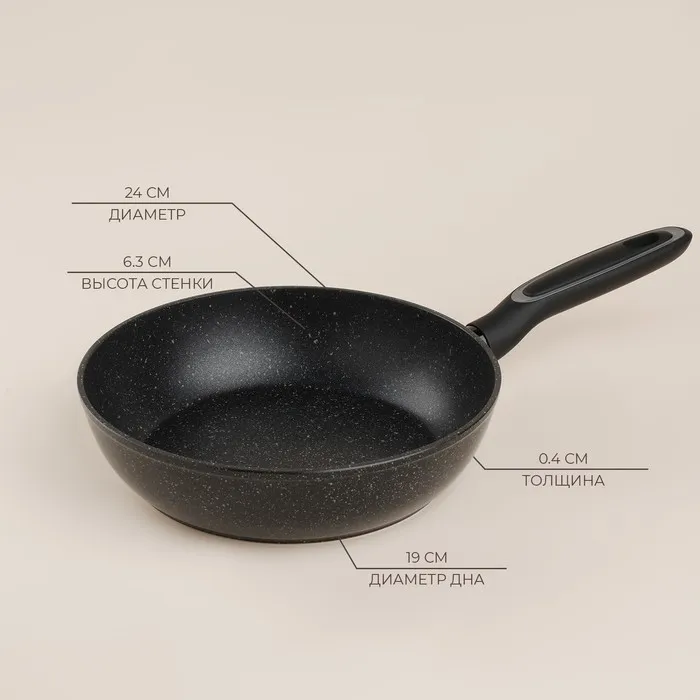 Сковорода с высоким бортом SL Home, d=24 см, h=6.3 см, кованый алюминий, антипригарное покрытие, индукция, чёрная — Характеристики