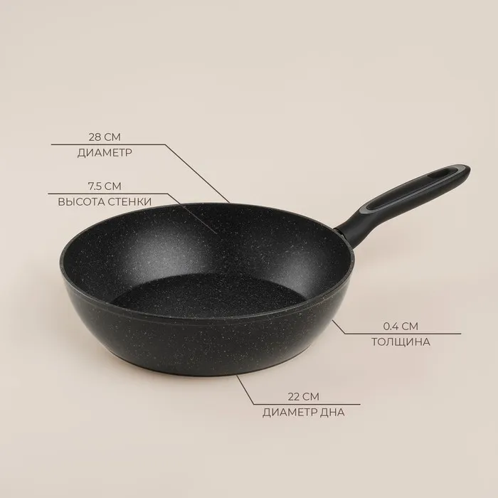 Сковорода с высоким бортом SL Home, d=28 см, h=7.5 см, кованый алюминий, антипригарное покрытие, индукция, чёрная — Характеристики