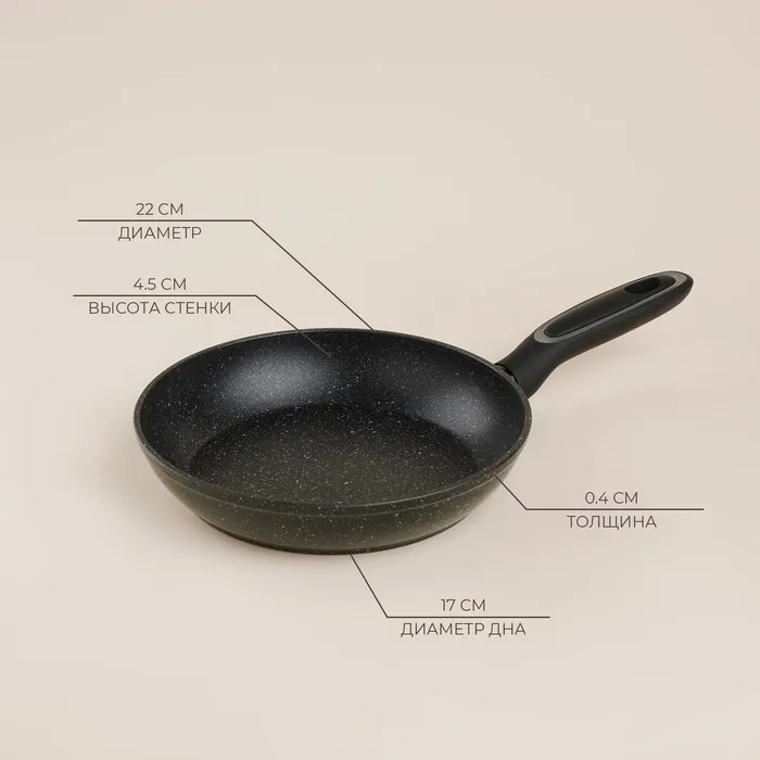 Сковорода SL Home, d=22, h=4.5 см, кованый алюминий, антипригарное покрытие, индукция, чёрная — Характеристики