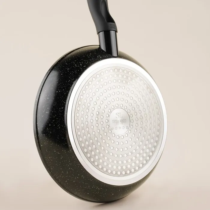 Алюминиевая сковорода SL Home - эта стильная и функциональная кухонная утварь станет незаменимым помощником в приготовлении разнообразных блюд. Антипригарное покрытие обеспечивает лёгкость в уходе и максимальную сохранность полезных свойств продуктов. Благодаря индукционному дну и чёрному цвету, сковорода идеально впишется в интерьер вашей кухни и будет радовать вас своим внешним видом каждый день. Толстые стенки и дно гарантируют равномерное распределение тепла и сохранение сочности продуктов. Эта сковорода подходит для всех типов плит, включая индукционные, что делает её универсальной для любой кухни.