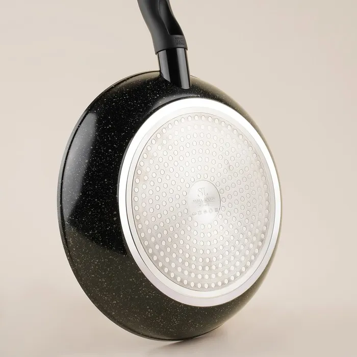 Алюминиевая сковорода SL Home - эта стильная и функциональная кухонная утварь станет незаменимым помощником в приготовлении разнообразных блюд. Антипригарное покрытие обеспечивает лёгкость в уходе и максимальную сохранность полезных свойств продуктов. Благодаря индукционному дну и чёрному цвету, сковорода идеально впишется в интерьер вашей кухни и будет радовать вас своим внешним видом каждый день. Толстые стенки и дно гарантируют равномерное распределение тепла и сохранение сочности продуктов. Эта сковорода подходит для всех типов плит, включая индукционные, что делает её универсальной для любой кухни.