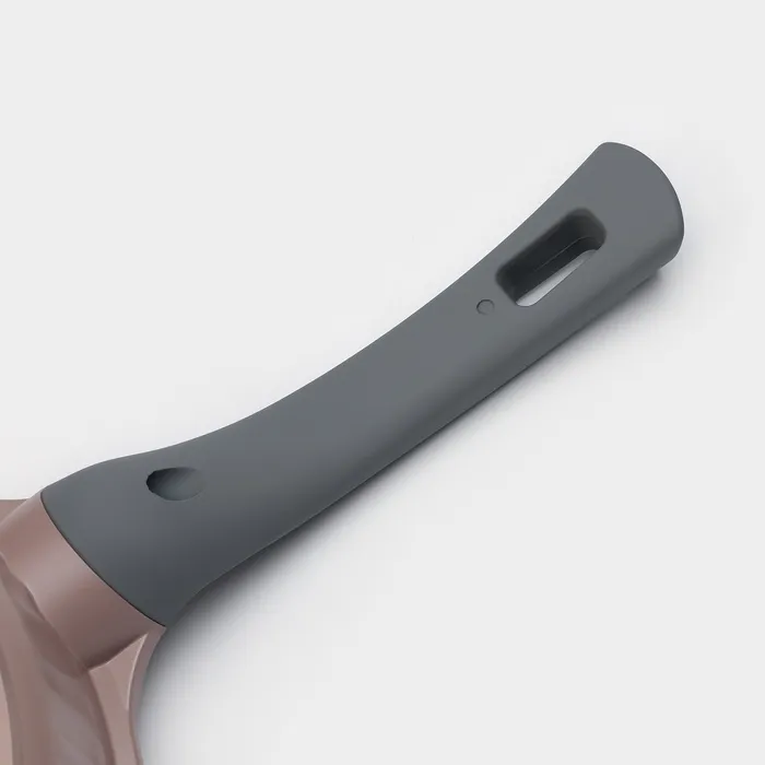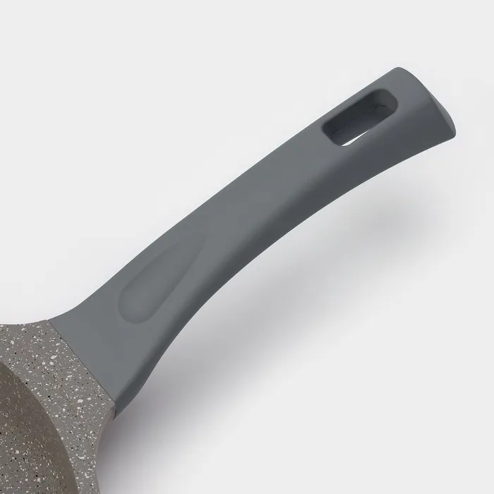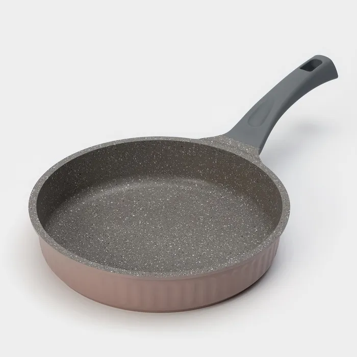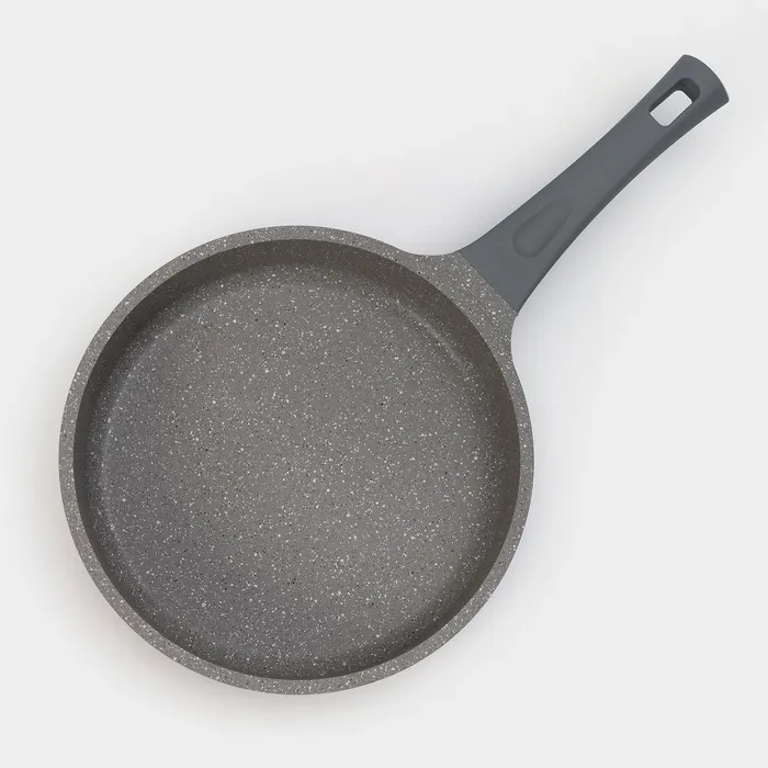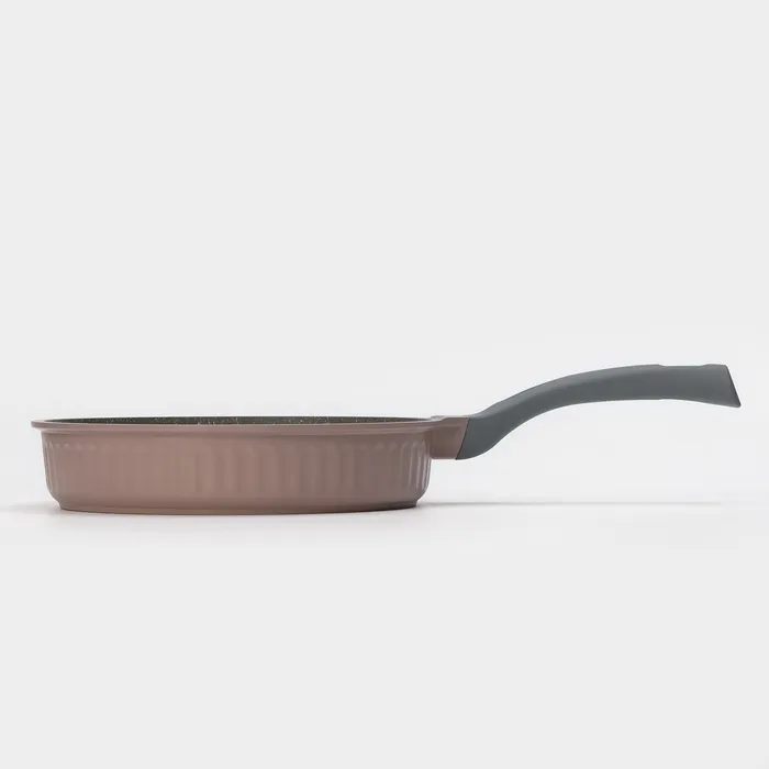 Но дизайн – не единственное преимущество сковороды. В ней имеется прочное шестислойное антипригарное покрытие турецкого производства Kaplon Classic 2 plus серого цвета с вкраплениями черного и белого цветов. Оно позволяет готовить с небольшим количеством масла и выдерживает до 16 000 циклов приготовления благодаря своей износоустойчивости.