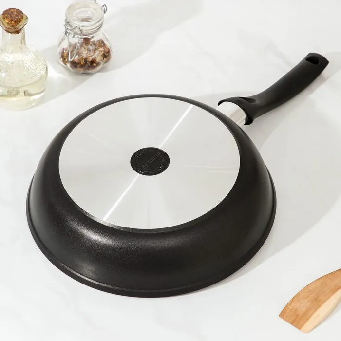 Сковорода «Традиция», 26×6 см, пластиковая ручка, стеклянная крышка, антипригарное покрытие, цвет чёрный — Характеристики