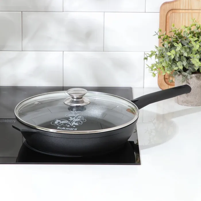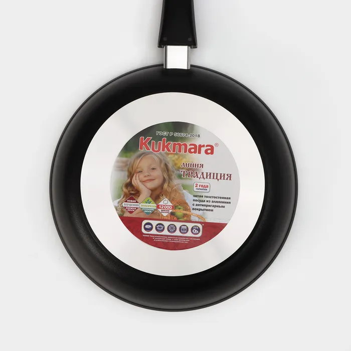 Продукция Kukmara изготовлена из литого алюминия и покрыта немецким высококачественным антипригарным покрытием на водной основе, усиленным сверхпрочными минеральными частицами.
