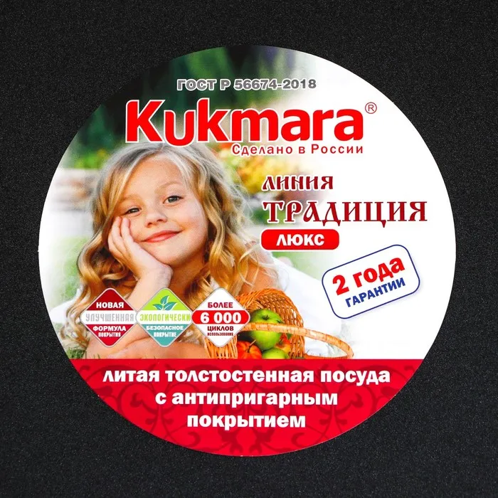 Посуда из литого алюминия. Имеет инновационное антипригарное мраморное покрытие на водной основе, которое изготовлено по немецкой технологии (Weilburger Coatings GmbH) и усилено сверхтвёрдыми частицами минералов.