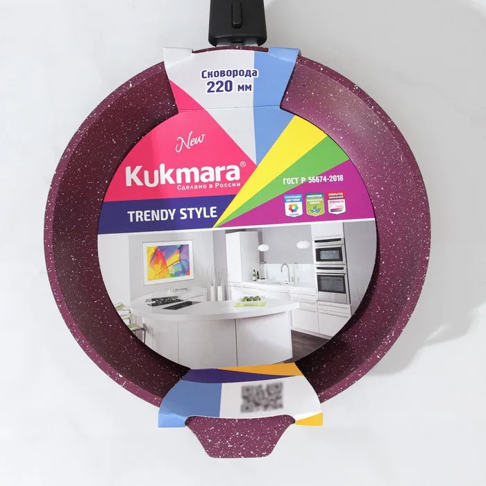 Посуда линии Trendy style разработана в соответствии с последними модными тенденциям. Сковорода Kukmara сделана из литого алюминия, с внутренней и внешней стороны — антипригарное покрытие увеличенной прочности, изготовлено на водной основе по немецким технологиям.