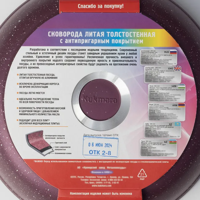 Посуда линии Trendy style разработана в соответствии с последними модными тенденциям. Сковорода Kukmara сделана из литого алюминия, с внутренней и внешней стороны — антипригарное покрытие увеличенной прочности, изготовлено на водной основе по немецким технологиям.