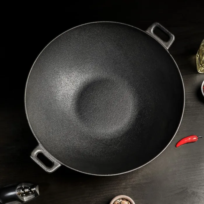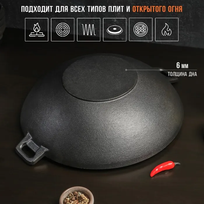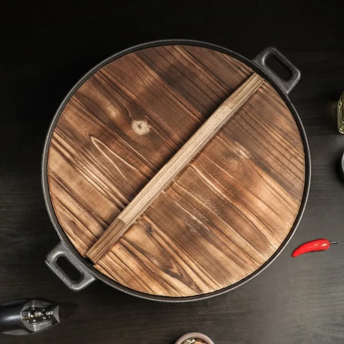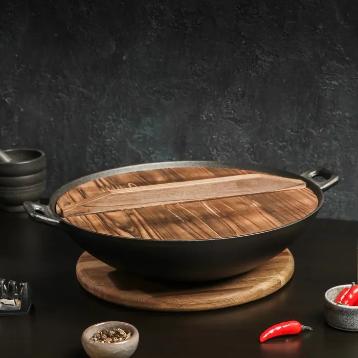 Сковорода-ВОК Magma «Хемминг», 4 л, 37×9.5 см, чугун, с деревянной крышкой, индукция, чёрная — Характеристики