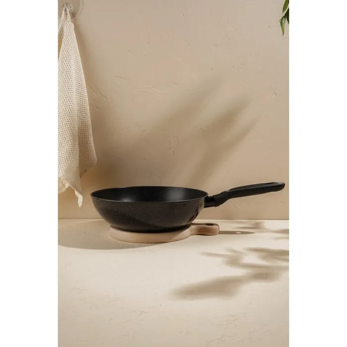 Благодаря антипригарному покрытию, ваши блюда готовятся с минимальным количеством масла, сохраняя все свои полезные свойства и вкусовые качества. Алюминиевый корпус обеспечивает равномерное распределение тепла, что позволяет идеально прожаривать или тушить ингредиенты. Сковорода совместима с любыми типами плит, включая индукционные, и её можно мыть в посудомоечной машине, что существенно упрощает уход за ней.