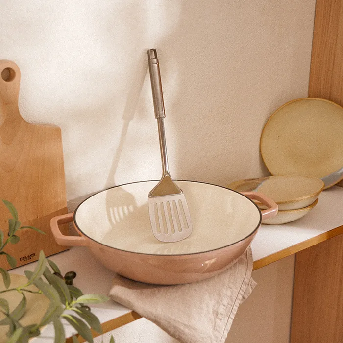 Эта сковорода-вок идеально подходит для приготовления блюд восточной кухни, требующих высокой температуры и быстрого перемешивания ингредиентов. Благодаря толстым стенкам и дну (по 4 мм), сковорода равномерно распределяет тепло и удерживает его, обеспечивая идеальные условия для жарки и тушения. Эмалированное покрытие защищает чугун от коррозии и упрощает уход за изделием — его можно мыть в посудомоечной машине.