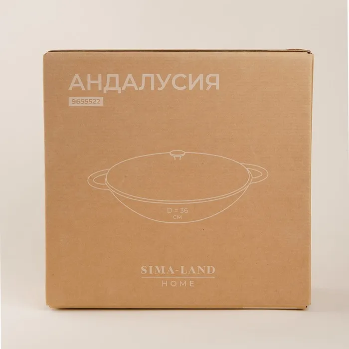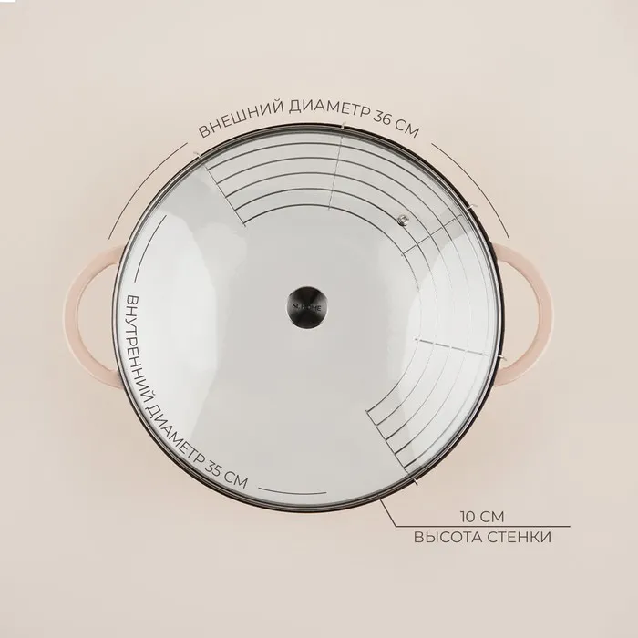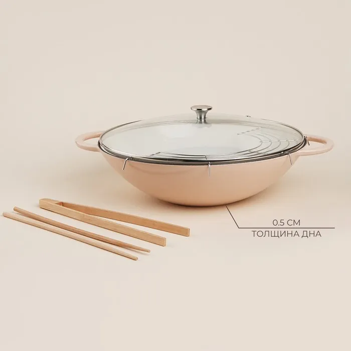 Сковорода-Вок SL Home, d=36 см, h=10 см, чугун, эмалированное покрытие, в комплекте с палочками, индукция, бежевая — Характеристики