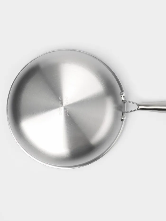Благодаря технологи 3PLY 3 цельных листа металла объединяются в единую монолитную форму, состоящую из внутреннего слоя нержавеющей стали марки AISI 304, центрального слоя алюминия, и внешенего слоя 430 AISI, что позволяет сковороде работать на любом типе плит, включая индукционные, а также обеспечивает равномерный нагрев и хорошую теплопроводимость, что делает её универсальным инструментом для любой кухни.