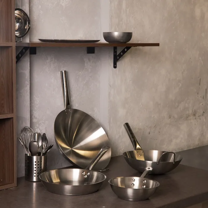 Посуду для приготовления из нержавеющей стали отличает равномерный нагрев и высокая прочность, что обеспечивает долговечность и эффективность в кулинарии. Стильный и современный дизайн делает её универсальной для любого кухонного интерьера