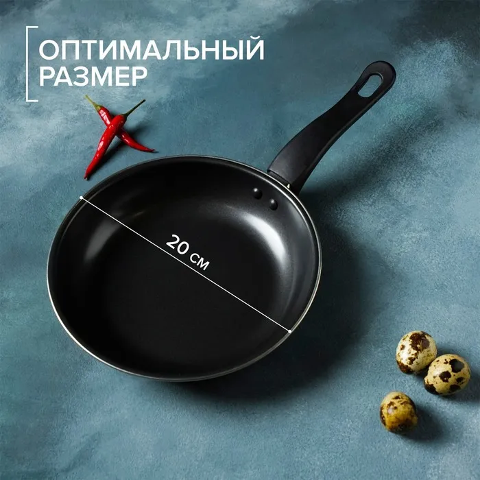 Сковорода «Жаклин», d=20 см, толщина 0.65 мм, пластиковая ручка, антипригарное покрытие, чёрная — Характеристики