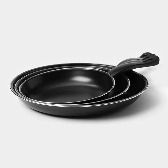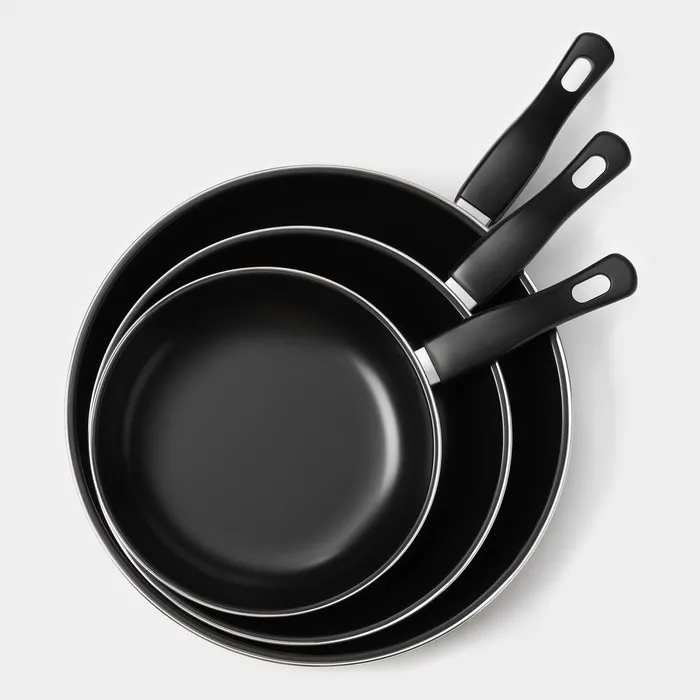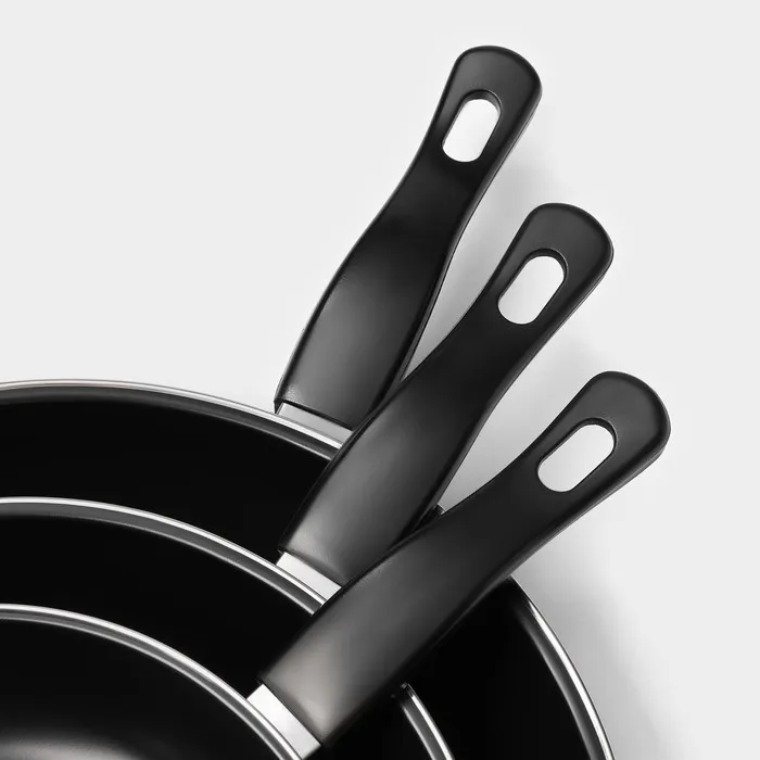 Сковороды «Жаклин», набор 3 шт.: 20/25/30×4 см, антипригарное покрытие, чёрные — Характеристики