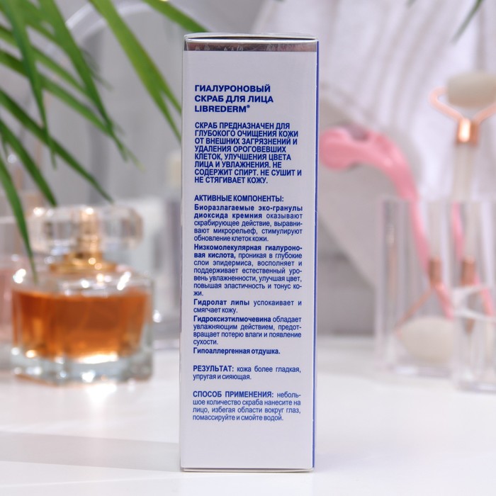 Гиалуроновый скраб с эко-гранулами и низкомолекулярной гиалуроновой кислотой. Глубоко очищает от загрязнений, мягко отшелушивает, увлажняет.