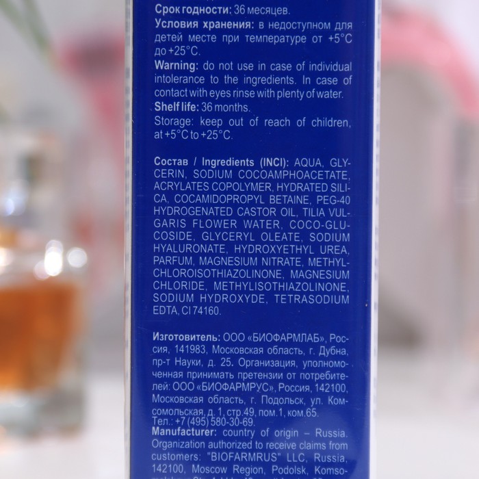 Состав: aqua, glycerin, sodium cocoamphoacetate, acrylates copolymer, hydrated silica, cocamidopropyl betaine, peg-40, hydrogenated castor oil, tilia vulgaris flower water, coco-glucoside, glyceryl oleate, sodium hyaluronate, hydroxyethyl urea, parfum, magnesium nitrate, methylchloroisothiazolinone, magnesium chloride, methylisothiazolinone, sodium hydroxyde, tetrasodium edta, ci 74160.