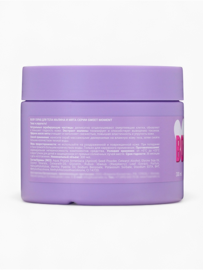 Скраб для тела SWEET MOMENT «Малина и мята» деликатно обновляет кожу, делая её гладкой, упругой и свежей. Мягкие натуральные частицы аккуратно отшелушивают омертвевшие клетки, способствуя обновлению и повышению эластичности кожи.