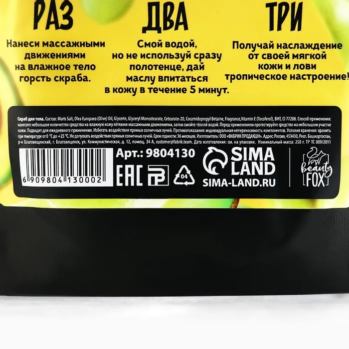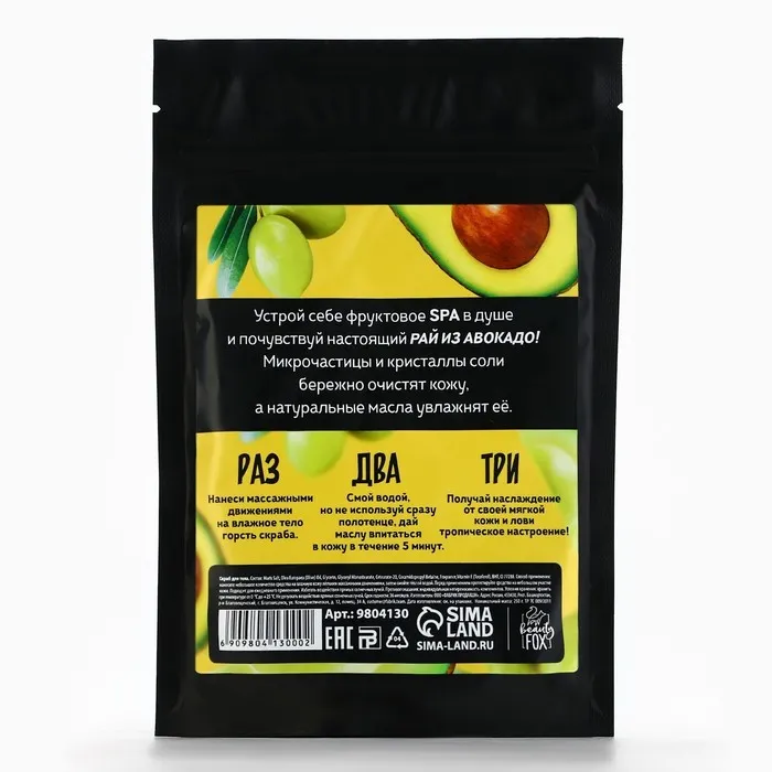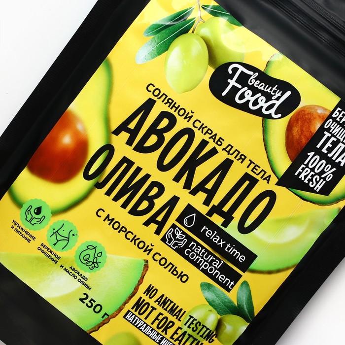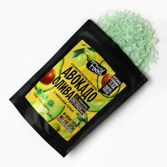 Скраб для тела соляной, 250 г, аромат авокадо и оливы, BEAUTY FOOD — Характеристики