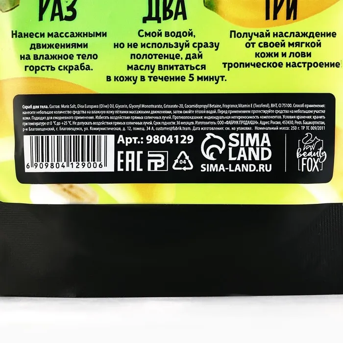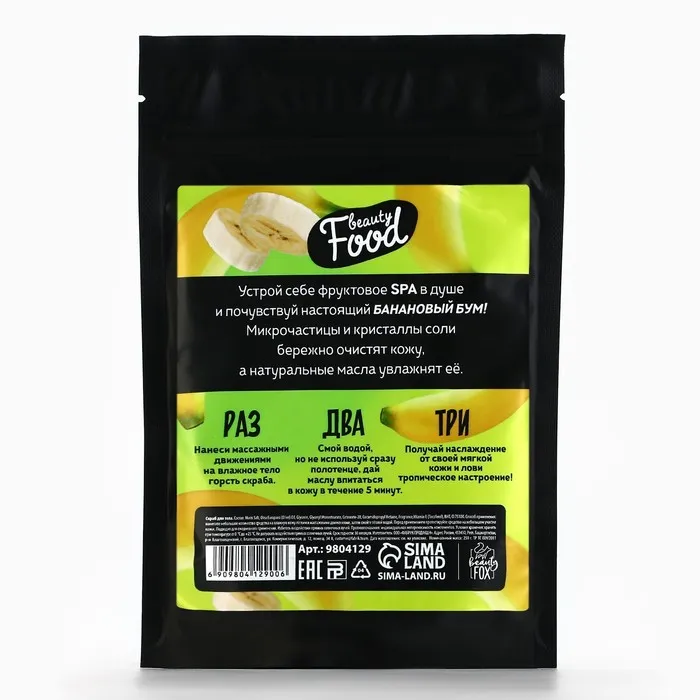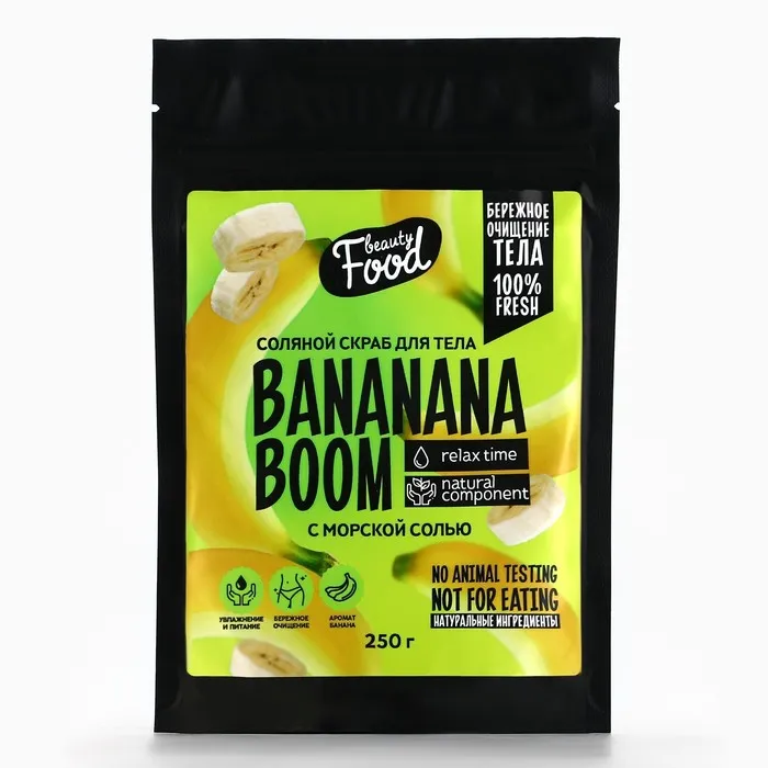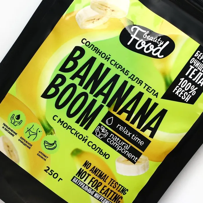 Скраб для тела соляной, 250 г, аромат банана, BEAUTY FOOD — Характеристики
