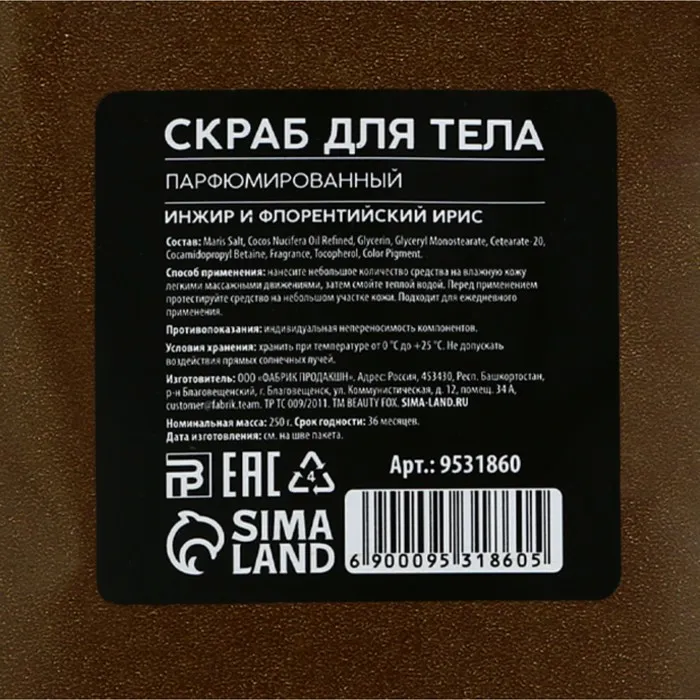 Скраб для тела соляной, 250 г, аромат инжира и ириса, AROMA THEORY by BEAUTY FOX — Характеристики