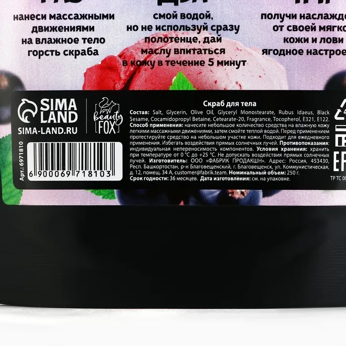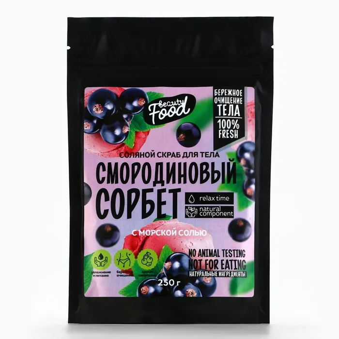 Скраб для тела соляной, 250 г, аромат смородины, BEAUTY FOOD — Характеристики