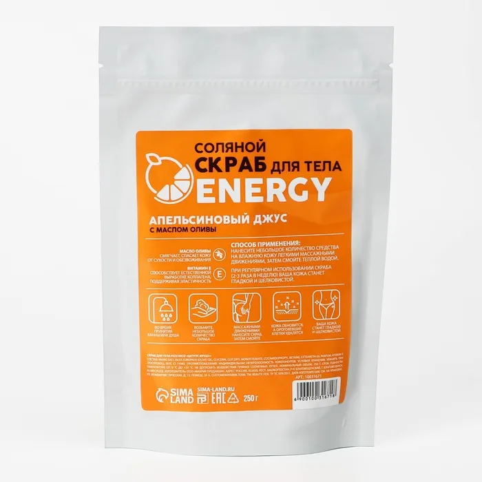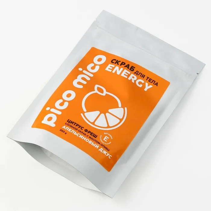 Скраб для тела соляной с маслом оливы, 250 г, аромат апельсиновый джус, PICO MICO — Характеристики