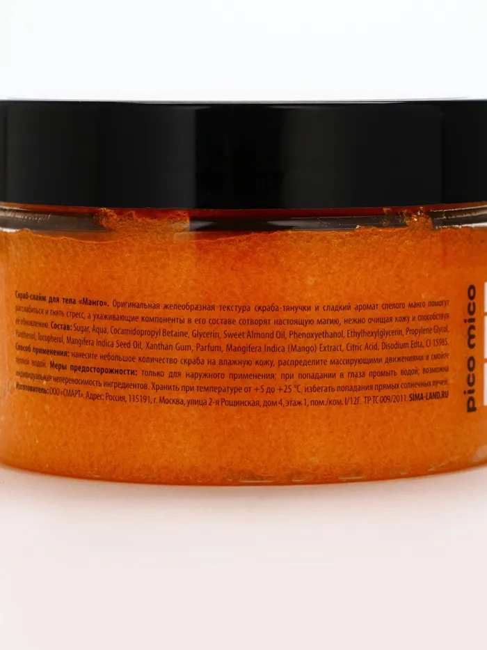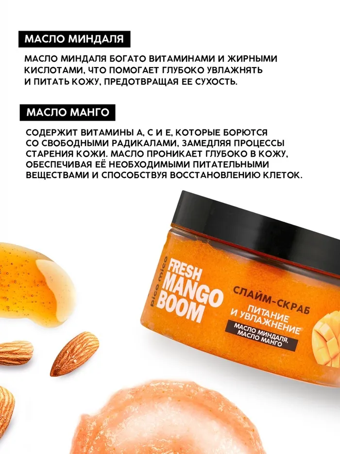 Скраб-слайм для тела Fresh mango boom, питание и увлажнение, с ароматом манго, 250 г, PICO MICO — Характеристики