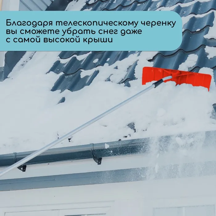 Эргономичный скребок изготовлен из качественного пластика и оборудован дополнительными ребрами жесткости. Раздвижная конструкция дает возможность очистить крышу от снежных масс даже в самых труднодоступных местах. Длина скребка от 193 см до 640 см.