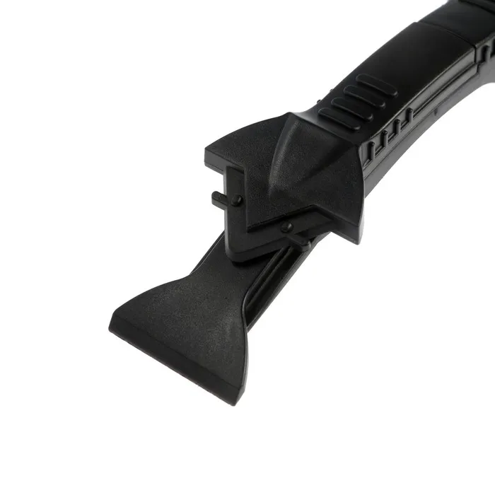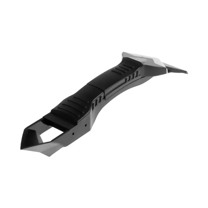 Модель является многофункциональной и удобной в использовании. С одного конца находится скребок, с помощью которого можно удалить лишний герметик из швов. На обратной стороне расположен выдвижной шпатель, который поможет в отчистке поверхности от лишнего герметика.