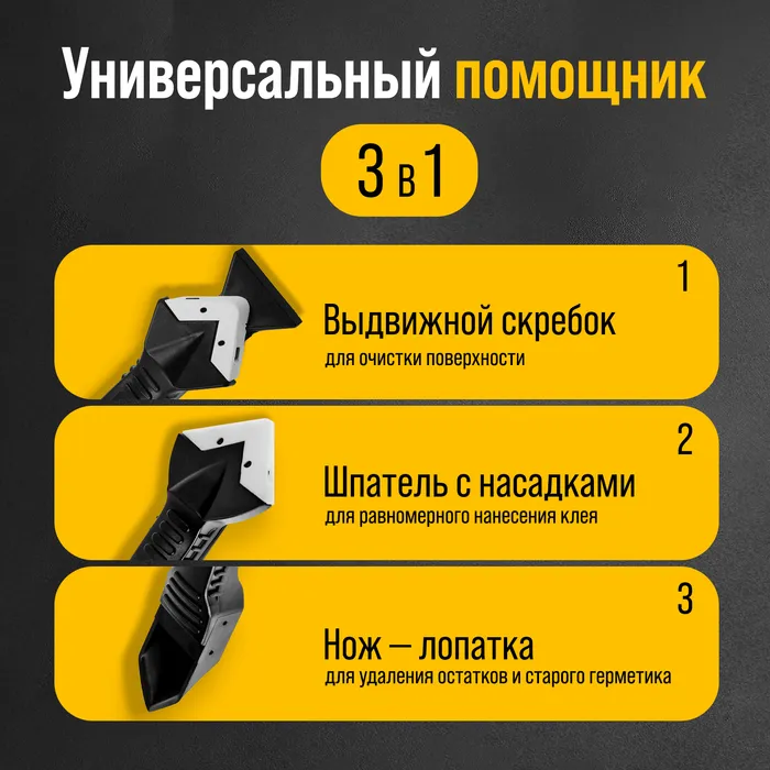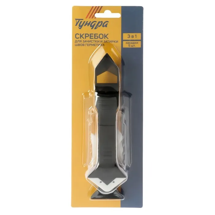 Скребок-шпатель для удаления и выравнивания герметика ТУНДРА, 3 в 1, 5 насадок — Характеристики